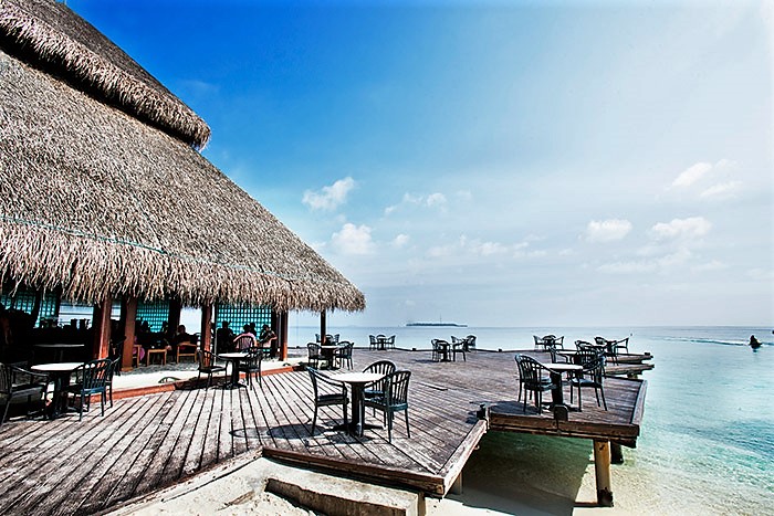 Terraza exterior del Nika’s Lounge Bar del Adaaran Club Rannalhi