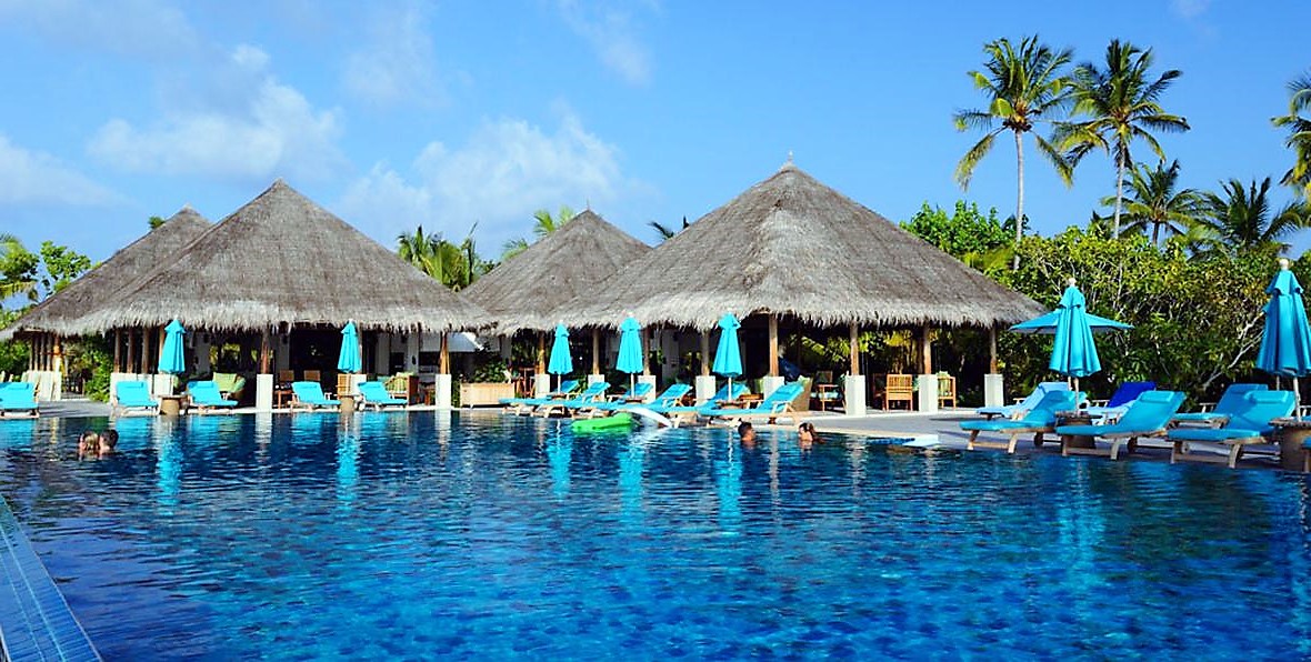 Este resort 5 estrellas está en una paradisíaca isla privada en el atolón Sur de Malé y es ideal para unas vacaciones en pareja. Famoso por la belleza de sus lagunas, el relax está garantizado.