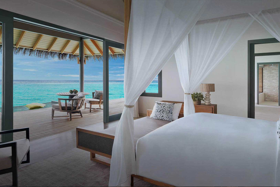 The Vakkaru Over Water Residence, con cerca de 950 m² y varios dormitorios en dos plantas, es una de las mayores residencias sobre el agua de Maldivas: gran infinity pool, spa pool, terrazas con hamacas sobre el mar y servicios añadidos (como chef a disposición en determinadas configuraciones). Es el producto estrella para grupos de alto presupuesto que buscan un overwater “de firma” en Baa.